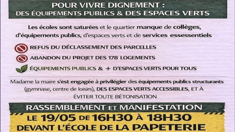 Nous demandons aux autorités locales de reconsidérer leur décision de déclassement et d'explorer des alternatives qui préservent l'équilibre de notre quartier et sa qualité de vie. Il est impératif de mettre en œuvre des solutions qui favorisent le bien-être collectif et l'avenir écologique de notre communauté.