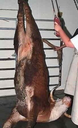 In a perfect world, cows wouldn’t be consumed in the first place. During this lifetime, we must demand that animals killed for food be spared gratuitous pain and suffering. Israel’s Chief Rabbi has failed to uphold a promise to reject shackling and hoisting. Some 80 percent of Israel’s imported kosher meat begins in South America with alert cows chained upside down by one leg. Muscles and tendons rip apart as the terrified cow dangles for minutes..