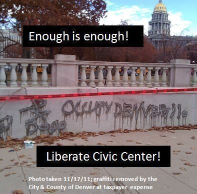 Civic Center Park has always been - and should always be - a haven for free speech. But the First Amendment does not protect those intent on destroying property or depriving others of their rights. Urban parks are not built for long-term habitation, and current city ordinances prohibit the vandalism, property damage, littering, public access obstruction, open-air drinking and drug usage, curfew violations, and public health/sanitation concerns currently on display at the encampment in Civic Center Park. While these are no doubt unintended consequences of what began with well-intentioned demonstrators - they are consequences which the taxpayers of Denver will no longer accept. Denver taxpayers invested $9.5 million in the recent restoration of Civic Center Park, and we want our park back.