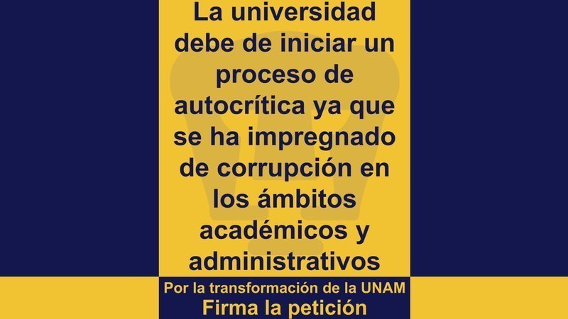 Tal y como lo dijo en medios de comunicación, el presidente del Tribunal Universitario de la UNAM, el Dr. Eduardo López Betancourt, la universidad debe de iniciar un proceso de autocrítica ya que se ha impregnado de corrupción en los ámbitos académicos y administrativos, así mismo señaló que la autonomía no debe de ser motivo para solapar malos manejos y de la misma manera no se puede seguir ocultando que existen mafias y grupos de poder que se han incrustado en las universidades públicas. Por lo que es inaceptable que la máxima casa de estudios del país, sea gobernada por grupúsculos que durante décadas se han favorecido para obtener beneficios académicos, políticos y económicos dentro y fuera de la universidad.