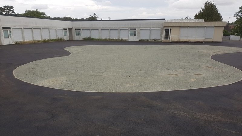 les premières conséquences de l’abattage des arbres d’un point de vue bioclimatique se font sentir : dès qu’il fait un peu beau/ chaud on ressent la chaleur qui s'accumule et on cherche à s’en protéger dans cette cour nouvellement goudronnée et sans l'effet bienfaisant et climatisant des arbres. Les gravillons du milieu de la cour sont la seule distraction des enfants actuellement …