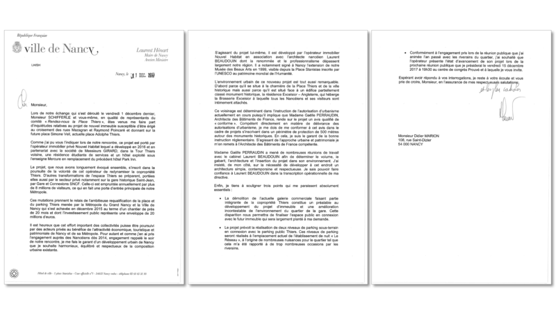 Ils ont exprimé, en votre nom, à Monsieur Laurent Hénart leur opposition à un nouvel immeuble de 29 mètres de haut, en vis-à-vis direct de l'Excelsior, ainsi que le sentiment de rejet qu'inspire la tour Thiers à la grande majorité de la population, aux visiteurs et aux touristes.