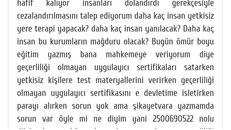 Öncelikle Çocuk Gelişimi Lisans mezunlarının Çocuk Gelişimciler günü kutlu olsun. Mesleğimiz hakkında başlatılan bu kampanyaya yoğun ilgi gösterdiğiniz için, destekleriniz için çok teşekkür ederim fakat maalesef hala aynı durumdayız. Özellikle Çocuk Gelişimi Lisans mezunlarının uygulaması gereken Oyun Terapisi uygulamasını yapamıyoruz ve bu yüzden mesleğimizi eksik yapıyoruz çünkü Oyun Terapisinin esas amacı ebeveyne doğru bir şekilde geri dönüt vermek ve bu sayede çocuğun problemini ebeveyne doğru aktarabilmektir. Çocuk ile ilgili bir problem olduğunda Çocuk Gelişimi Lisans mezunlarının sadece Aile Danışmanlığı yapmaları bizim mesleğimizi eksik yapmamıza sebep olur çünkü çocuğun iç dünyasını Oyun Terapisi yapamadığımız için anlayamıyoruz aynı durum psikologlar için de geçerlidir çünkü yasaya göre psikologlar da yasal olarak terapist olamamaktadır. Sadece klinik psikologlar ya da psikiyatristler yasal olarak terapisttir ayrıca bu konu hakkında detaylı olarak cimere yazdım ve cimer her nedense cevap dahi veremedi. Onlara hem mesleki sorunlarımızdan hem de sertifika kurumlarının bizi ne denli yanılttığı hakkında detaylı bir metin yazdım. Onlar ise aradan en az 3 ay geçmesine rağmen ne yazık ki cevap veremiyorlar lütfen siz de klinik psikolog ya da psikiyatrist değilseniz ve herhangi bir kurumdan üzerinde uygulayıcı yazan ama uygulama yetkisi olmayan sertifikalardan herhangi birisini aldıysanız bu kurumları cimer üzerinden sağlık bakanlığına şikayet edin çünkü bu kurumlar pek çok meslektaşımın ve hatta psikologların ve hatta yetkisi olmayan meslek gruplarının (sosyologlar gibi...) Parasını alıyorlar terapist olabilirsin, dikkat ve zeka testi uygulayabilirsin diye vaatler veriyorlar ve bu geçerliliği olmayan uygulayıcı sertifikalarını ayrı bir para ile satıyorlar yani eğitime ayrı uygulayıcı sertifikasına ayrı para ödüyoruz hatta e devlete uygulayıcı sertifika işletme parası da alıyorlar çünkü e devlete işlenen uygulayıcı sertitikaları her zaman ama her zaman daha pahalıya satılıyor ama yasalar çerçevesinde bu aldığınız eğitimleri uygulayamazsınız demiyorlar. Bende dikkat ve zeka testinin materyalleri var uygulama yetkim olmamasına rağmen bana bu testleri uygulayamazsınız demiyorlar. Üstelik dikkat ve zeka testi materyalleri için de ayrı para alan kurumlar mevcuttur. İl Sağlık Müdürlüğüne göre Floortime eğitimini bile resmi olarak uygulayamıyoruz çünkü Floortime da terapi olarak geçiyor. Oysa bu eğitimler bize dolarla satılıyor Floortime terapisti olmak için 2 sertifika 2 eğitim parası alınıyor ama toplam 4 kez ödeme yapmamıza rağmen resmi olarak psikologlar ya da Çocuk Gelişimi Uzmanları terapist olamaz maalesef lütfen bu eğitim kurumlarını cimere şikayet edin bu sorunlar devam ettiği müddetçe ben bilgilendirme yapmaya ve bu sorunlara dikkat çekmeye devam edeceğim maalesef mesleğimizi gereken standdartta yapamıyoruz lütfen bu duruma dur demek için meslektaşlarımızı bilinçlendirin. Ben bu kampanya sayesinde pek çok meslektaşımdan olumlu geri dönüş aldım bana haklarımı öğrettiğin için teşekkür ederim şeklinde. Çocuk Gelişimi Derneğinin de en yakın zamanda bu konuya bir el atması dileğiyle ayrıca şunu da belirtmek istiyorum sertifika kurumları yüzünden yanılan ve kendisini terapist sanıp bu yüzden ofisleri kapanan o kadar çok psikolog ya da Çocuk Gelişimi Lisans mezunu var ki İl Sağlık Müdürlüğü bu kurumların insanları yanılttıklarını bana bizzat söyledi hatta cimer üzerinden sağlık bakanlığına şikayet etmemi öneren de İl Sağlık Müdürlüğüydü ama önerilerini uygulamama rağmen yaklaşık 3 ay geçmesine rağmen cevap alamadım.
