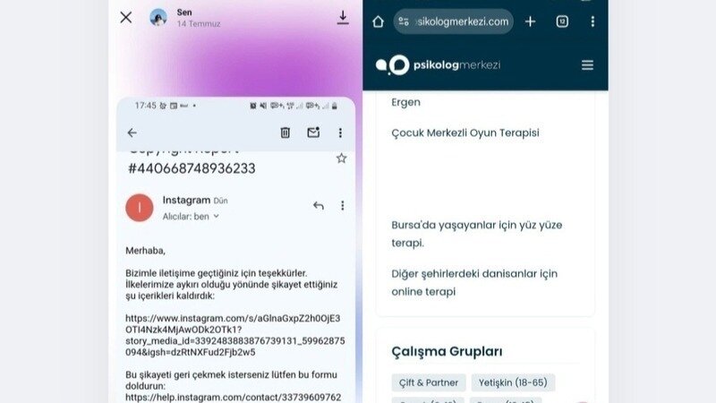Bu arada benim ofisimi mühürleten kişi Cahit Ufuk Battaldır ve kendisi yetkisi olmamasına rağmen terapi yapıyor bunu da her yerde yayınlıyor onu da pek çok kez hem savcılığa hem de cimere şikayet ettim ve bir şey olmadı bunun bilgisini de eklemek istiyorum lütfen psikolog merkezi profiline girip bakın aynen şöyle bir ibare var: Bursa'da yaşayanlar için yüz yüze terapi Bursa'da yaşamayanlar için online terapi bir tek bir kereliğine gitmişler bir uyarıda bulunmuşlar hatta şunu demişler: Psikologlar terapist değildir ve sen terapi yaparak yetki sınırını aşmışsın demişler ama hepsi bu hepsi bu yani ama bu adam uyarılara rağmen hala gidip terapi yaptığını ifade ediyor ve bu terapileri Eylem Psikoloji merkezinde yapıyor (yani kendi ofisinde) kendisi daha önce URSAD derneğinde (kendi kurduğu dernekte) psikologlar hariç herkesi sahte sağlık başlığı altında etiketlemişti hatta sadece lisans mezunu pek çok meslek grubunu şikayet etmedi bir de doktor sitesi diye bir platformu şikayet etmişti ve hem Lisans mezunu pek çok meslek grubunu hem de doktor sitesini sayfasında karalamıştı ben bu ismi instagrama şikayet etmiştim ve instagram bana URSAD derneğinin instagram sayfası kapandı şeklinde bir geri dönüt verdi ve sahiden de sayfa kapandı o günden sonra bana kinlenip ofisimi kapattı çünkü kurallardan haberim yoktu ve kimse bana terapi yapamadığımı söylemedi (kaldı ki aldığımız lisans derslerinde hep vaka ve bu vaka karşısında ne yapabiliriz? Hangi terapiyi uygulayabiliriz? Gibi örnekleri işliyorduk ayrıca ben pek çok eğitim aldım) (lütfen bir önceki güncellemeye bakın) aldığım eğitimlerden bahsettim ve üstüne psikoloji yüksek lisansını bitirdim ve Doğuş Üniversitesindeki hocalar bile Çocuk Gelişimi Lisans mezunları çocuk konusunda psikologlardan daha bilgili demişlerdi çünkü psikologlar daha çok yetişkin dersleri alıyor ama Çocuk Gelişimi Lisans mezunları sadece çocuk dersleri alıyor demişlerdi Doğuş Üniversitesinin hocalarından birisi de (üstelik bu kişi eski psikoloji bölüm başkanı Kahraman Güler) bana dedi ki: Psikolojiye en yakın bölümlerden birisi de Çocuk Gelişimi Lisans bölümüdür demişti fotoğraflarda Gördüğünüz gibi ben meslektaşlarımın bir platformda kötülenmesini engellediğim icin ofisim kapandı hatta o olaydan sonra çoğu meslektaşım bana teşekkür etti çünkü bu sayfada adımız çıkmıştı, bu kişi bizim hakkımızda sayfasında kötü kötü şeyler yazıyordu ama sen kişinin derneğinin instagramını kapadın çok çok çok teşekkürler diye o kadar sevinmiştim ki sonra tekrar URSAD derneğinin instagram sayfası açıldı ama hiç bir koşulda kurumları ya da lisans mezunu meslek gruplarını karalayamadı lütfen siz de Cahit Ufuk Battalın yetkisiz yere terapi yaptığını psikolog olmasına rağmen terapi yaptığını ve bu terapileri Eylem psikoloji diye bir ofiste yaptığını (bu ofiste yetkisi olmamasına rağmen hem terapi yaptığını hem de danışanlarının ruh sağlığını tehlikeye attığını) cimer sağlık bakanlığına şikayet eder misiniz? Cahit Ufuk Battal'ın yetkisiz yere terapi yapıp insanların ruh sağlığını tehlikeye atması beni şahsen çok rahatsız ediyor kendisi bir psikolog ve terapi yapma yetkisi olmamasına rağmen terapi yapıyor