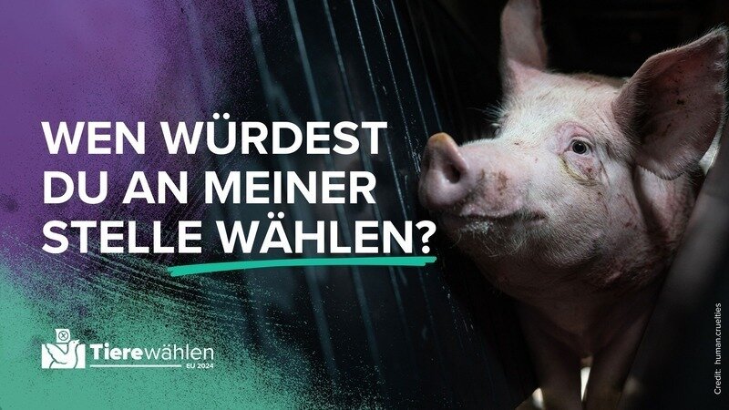 Setze dich mit uns für die Tiere in Europa ein! Am 09. Juni 2024 sind Europa-Wahlen. Tiere sind von unseren politischen Entscheidungen betroffen, aber können selbst nicht wählen gehen. Daher am 09. Juni 2024: Auch für Tiere wählen!