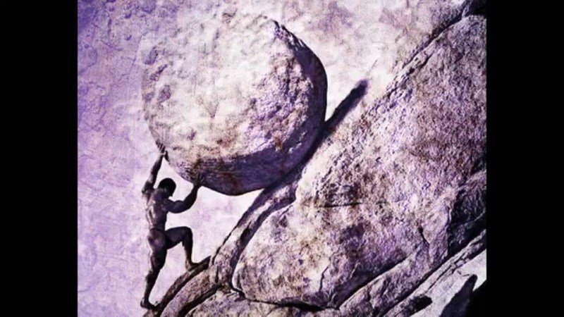 Der Mensch verhält sich dabei wie die griechische Mythologiefigur Sysiphos, der von Hermes für seinen Frevel in die Unterwelt gezwungen wurde, wo er zur Strafe einen Felsblock auf ewig einen Berg hinaufwälzen muss, der, fast am Gipfel, jedes Mal wieder ins Tal rollt.