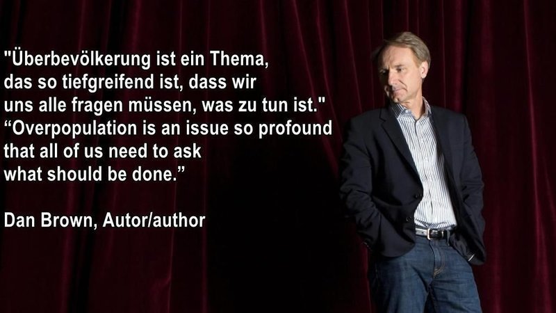 Dan Brown, Autor/author (born 1964): "Überbevölkerung ist ein Thema, das so tiefgreifend ist, dass wir uns alle fragen müssen, was zu tun ist." “Overpopulation is an issue so profound that all of us need to ask what should be done.”