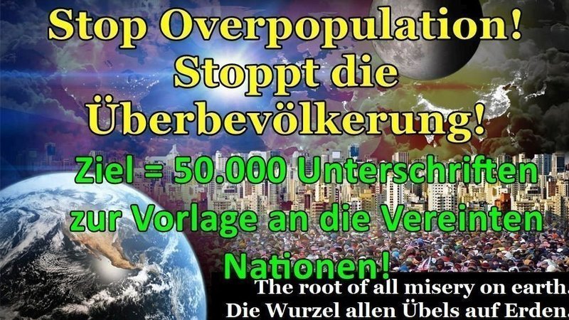 When 50,000 signatures have been obtained, the petition is presented to the United Nations Representation in Germany, accompanied by a request for them to be discussed at a UN General Assembly and the immediate adoption of global birth regulations, starting with a worldwide birth stop for which all governments in their country are responsible.