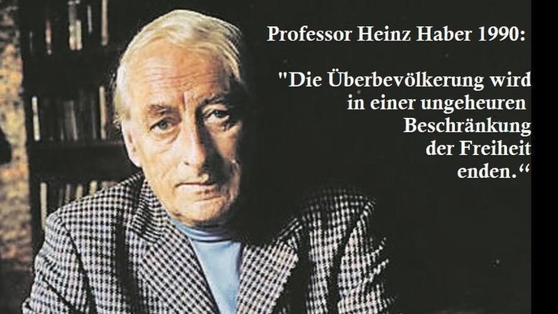 Professor Heinz Haber im Jahr 1990 kurz vor seinem Tod in einem Interview mit Manfred Gregor (Auszug): „Wir werden bestimmt von unseren Enkeln als eine der miesesten Generationen eingeschätzt werden, weil wir unglaublich selbstsüchtig sind. Wenn ich bloss an die Schätze der Erde denke. Wir haben in diesen 120 Jahren zwei Drittel des Öls und ein Drittel der Kohle verbraucht. Um diese Schätze bereitzustellen, brauchte die Erde 300 Millionen Jahre!! Wir benehmen uns wie die Erben einer reichen Familie, die das ganze Familienvermögen in einer Nacht verprassen. Und nach mir die Sintflut … Und damit werden wir unseren Ruf unseren Kindern und Kindeskindern gegenüber restlos versauen. Wir mit unserer Technik, die doch eigentlich die Frucht der Intelligenz des Menschen sein soll, wir rotzen da rein … das ist unglaublich … Die Überbevölkerung wird in einer ungeheuren Beschränkung der Freiheit enden.“