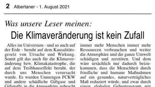 Dieser Leserbrief ist jetzt in verschiedenen Zeitungen veröffentlicht worden, unter anderem in der deutsch-kanadischen Zeitung "Der Albertaner" auf Seite 2, siehe https://uploads-ssl.webflow.com/5e824f8d3398868b3fe36262/6106f1e57001e95aa04687e1_albertaneraug2021.pdf