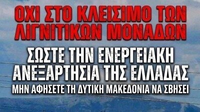 Το Κλείσιμο και η Καταστροφή των Λιγνιτικών Μονάδων είναι Εθνικό Έγκλημα,, υπονομεύουν την Ενεργειακή Ασφάλεια της χώρας μας και αποτελούν πράξεις που βλάπτουν καίρια τα συμφέροντα και την ακεραιότητα της Πατρίδας μας !!!