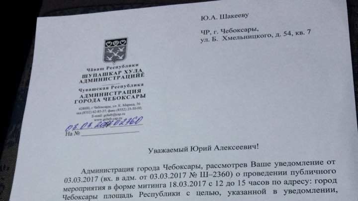 Уважаемые единомышленники, сторонники отставки Игнатьева М.В. 18 марта нам не одобрила администрация протестный митинг на площади Республики, под предлогом организации митинга администрацией в честь присоединения Крыма. Хочется отметить что администрация Чувашии и Чебоксар никакого отношения к присоединению Крыма к России не имеет, ни одно из официальных лиц администрации до начала процесса присоединения даже ни одного слова поддержки крымчанам открыто не заявляло. Игнатьеву не спятаться за Крымскими событиями и не прикрыться подневольными митингами админресурса! Мы не намерены отступать от своих требований, выбирать бесконечно другие дни и в целях соблюдения законности принято решение митинговать в этот же день за отставку Игнатьева М.В. с должности Главы Чувашии вопреки капризам администрации. Во избежание открытых столкновений и кровопролития решено не участвовать в лицемерном митинге администрации на площади Республики! Принято решение собрать сторонников отставки Игнатьева в сквере Чапаева с согласованной, тождественной позицией отделения КПРФ Чувашии. Сторонники отставки Игнатьева присутсвовали на митинге Эсеров, сейчас будем стоять за свои убеждения на митинге КПРФ. Будем использовать все политические площадки для достижения цели! Независимо от политических убеждений все сторонники отставки Главы Чувашии могут прийти на митинг согласованный КПРФ с администрацией в сквер Чапаева 18-го марта 2017 года к 11 часов дня. Наше главное требование-немедленная отставка Игнатьева! Нас не остановит администрация, мы будем приходить на согласованные митинги политических партий, если нам и дальше будут чинить искусственные препятствия! В связи с недавней стычкой митингующих с полицией рекомендую приходить на митинги с друзьями и родными людьми, которые в случае необходимости смогут постоять за вас и не позволят поддаться на провокации.