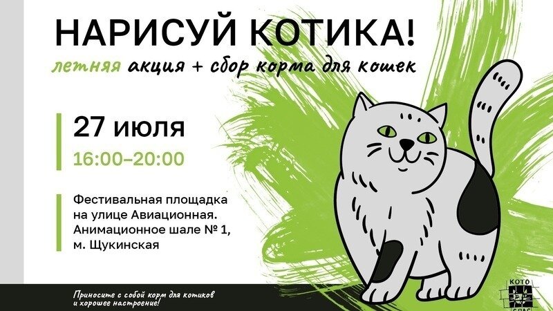 Сегодня в 16.00 мы ждем всех, кто живет недалеко от Щукинской на акции "Нарисуй котика".