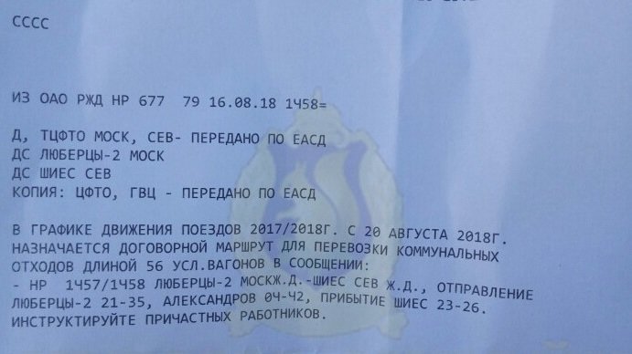 РЖД с 20 августа НАЧИНАЕТ ВЫВОЗ ТВЁРДЫХ КОММУНАЛЬНЫХ ОТХОДОВ на станцию Шиес из г.МОСКВЫ!!!