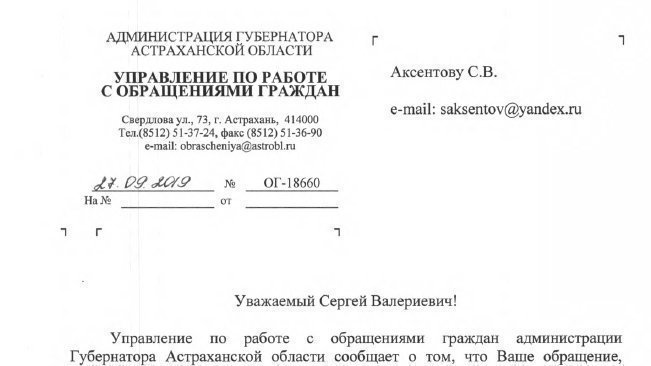 Petition updateОбеспечьте жителям Астраханской области безопасный воздух!Поступила реакция от администрации губернатора АО на нашу петицию