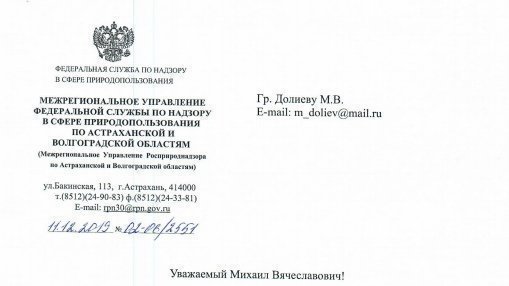 Я получил ответ из Межрегионального Управления федеральной службы в сфере природопользования по Астраханской области, о том что данные предприятия оштрафованы!"