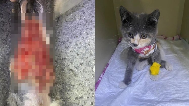 Малышке, которую назвали Звездочкой, провели хирургическую обработку. На животе у нее теперь буквально открытая рана, которая требует тщательного ухода. Из ветклиники кошечка вернулась домой к зоозащитнице. По прогнозам ветеринаров, рана может зажить, но на это потребуются месяцы или даже годы. На ее месте останется большой рубец.