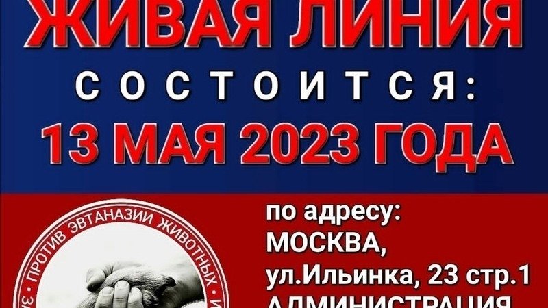 13 мая состоится 5-ая ЖИВАЯ ЛИНИЯ в МОСКВЕ к АП РФ против убийства бездомных животных.