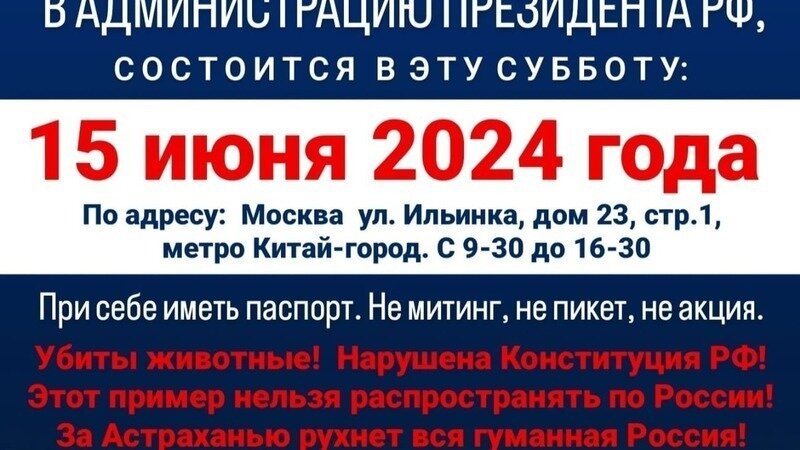 В связи с вступлением регионального Закона Астраханской области от 27.12.202З № 129/2023-ОЗ «О порядке осуществления деятельности по обращению с животными без владельцев на территории Астраханской области», противоречащего ФЗ от 27.12.2018 № 498-ФЗ «Об ответственном обращении с животными и о внесении изменений в отдельные законодательные акты РФ», а также вступлением в силу Постановления от 14.02.2024 №8 «О порядке создания, размещения и обустройства пунктов временного содержания животных, организации их деятельности и нормы содержания животных без владельцев на территории Астраханской области», Постановления от 04.06.2024 № 41 «О внесении изменений в постановление службы ветеринарии Астраханской области от 14.02.2024 №8», и действиями региональных властей и подрядных организаций (муниципальных и частных), предположительно направленными на создание искусственных преград к вывозу животных из пунктов временного содержания (далее ПВС) зооволонтерами, собственниками животных, неравнодушными гражданами, прошу провести проверку органами Центрального Аппарата РФ: