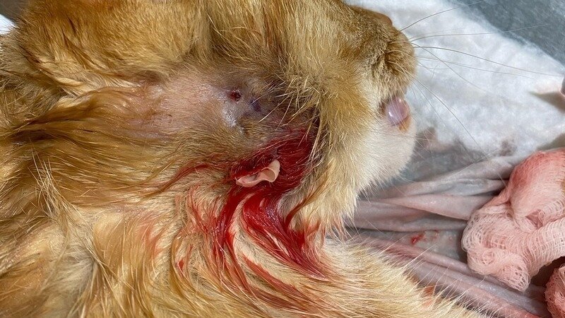Ну и на последок, Татьяна Кочергина нашла старенькую кошечку с большой опухолью. Её практически заживо съедали мухи. Танюша забрала бедосю в дом, обработала, выстригла колтуны. Сейчас кошечка получает паллиативную помощь. Пока ест самостоятельно и даже мурчит!