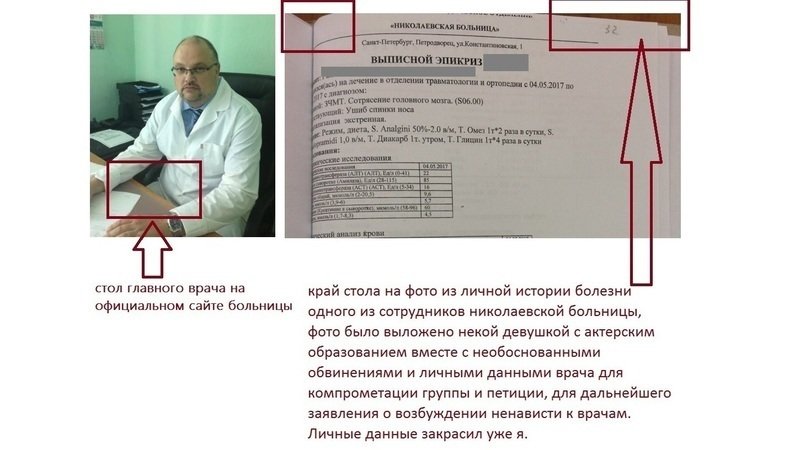 Хочу обратиться и к девушке Анне, разместившей петицию: Я хотел вам написать для того, чтоб вы изложили свою жалобу более подробно, но у вас закрыты личные сообщения. Знаете, что меня смутило Анна (по образования Вы – актриса, это я тоже заметил), но больше всего удивило, фото справки из истории болезни с содержанием личной информации о заболевании врача Николаевской больницы, с которым Вы, якобы, ведете конфликт! Это фото сделано на фоне стола такого же (см. цвет стола и коврика на столе), какой стоит в кабинете главного врача Решетника. Интересное совпадение, надеюсь, это случайность!
