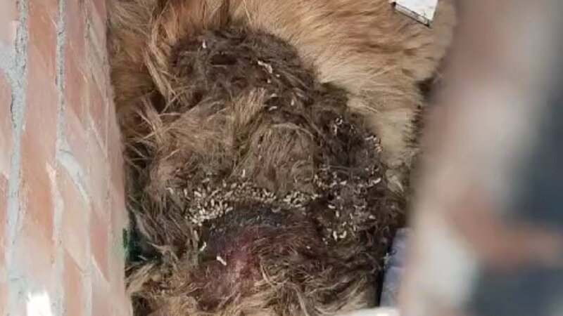 Тело алабая всё ещё в морге приюта. И мы ждём обещанной экспертизы. На фото рана головы и шеи с которыми алабай поступил в приют - кровь, гной и опарыши. Поступил от человека, который за него вроде как очень переживал.