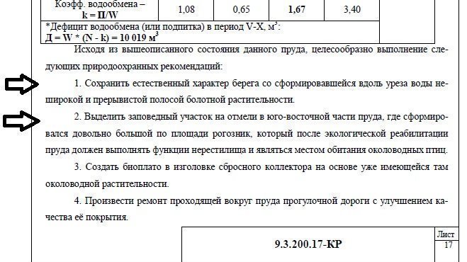 2. Выделить заповедный участок на отмели в юго-восточной части пруда, где сформировался довольно большой по площади рогозник, который после экологической реабилитации пруда должен выполнять функции нерестилища и являться местом обитания околоводных птиц.