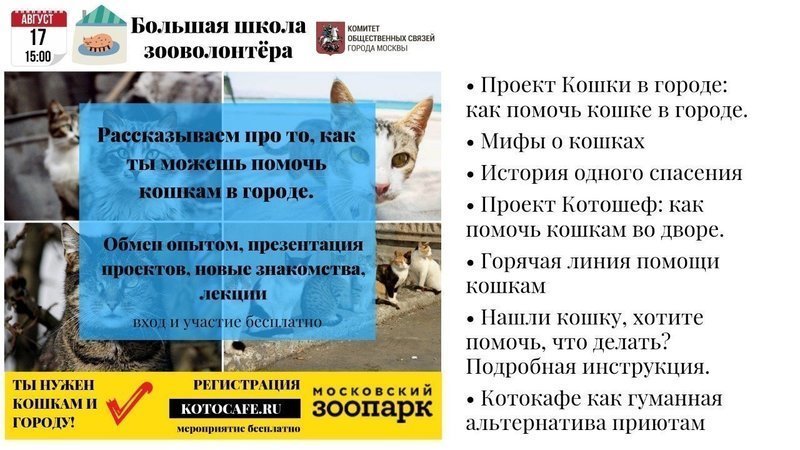 Мы приглашаем Вас на нашу очередную школу зооволонтера в Московский зоопарк! Сегодня в 14.30 подходите к кафе Панда, волонтеры зоопарка проводят Вас в открытый лекторий!