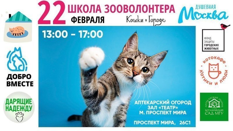 Встречи проекта «Большая школа зооволонтера» будут проходить ежемесячно на разных площадках столицы. На них будут приглашаться эксперты проектов, занимающихся помощью бездомным животным.