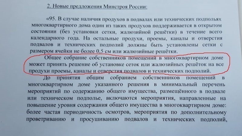Так вот, на встрече при обсуждении предложения Минстроя сразу встал вопрос по второму абзацу предложения, где по общему собранию все продухи можно закрыть сетками и Владимир Бурматов отметил, что его хорошо бы его исключить, но Министерство тем не менее настаивает на этой формулировке, мы продолжим еще диалог и будем предлагать различные варианты.
