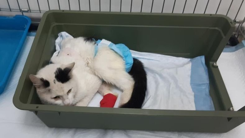 Извините, что прошу помощи на котика, порвали собаки, 4 сломаных ребра, кровь в легких, непонятно что с позвоночником, не ходит сам не встает, анализ пан и корона в высоких титрах, при этом еще и агрессор, выгоняют нас из многих клиник и стационаров, гематокрит 8, нужно переливание, для этого нужно нам перевезти его в стационар хорошего уровня из местной клиники, заказать кровь в лаборатории, найти доноров и проверить еще на совместимость, это очень большие расходы ((, иногда же не пройдешь мимо при всем желании нужно помочь коту и дать ему шанс.