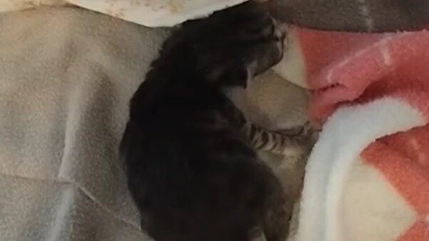 У нас такая ситуация, что пришлось забрать новорожденного котенка из сносимой пятиэтажки на Матвеевской улице.