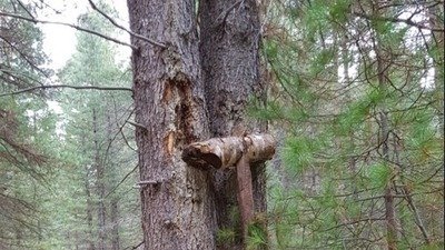 На самом деле все способы заготовки ореха, кроме сбора уже упавших шишек, наносят вред. Лазанье по деревьям чревато обломанными ветками, а они у кедра очень хрупкие! В этом году около деревни Средняя Шушь такой способ привел к гибели самого сборщика. Лазание с когтями, когда применяется специальная обувь с острыми железными шипами, безопасен только для человека. Коре же дерева при этом наносятся повреждения. Но самым распространённым способом является использование колота – деревянного молотка весом от 20 до 70 килограммов. Обычно его изготавливают тут же на месте, спилив берёзу или молодой кедр. А потом долбят что есть силы, пока с дерева не начинают валиться шишки, а порой хвоя и ветки. Знающие своё дело мастера бьют по стволу только с одной стороны, чтобы к следующему сбору урожая раны затянулись смолой. Но это уже мало помогает. Охотников до дармового ореха стало так много, что деревья не успевают залечить свои раны – чахнут, истекая смолой, гибнут, не отжив и половины положенного срока. Если посмотреть чуть выше уровня глаз, то буквально на каждом стволе можно увидеть характерные «дупла», из которых сочится смола. Это и есть работа колота. Если пройтись по лесу и оглядеться, то вы не увидите ни одного не пострадавшего кедра – сборщики ходят друг за другом, жестоко молотя каждое дерево десятки, а то и сотни раз за сезон.