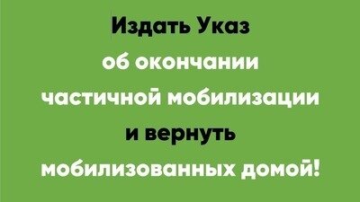 Издать указ об окончании частичной мобилизации и вернуть мобилизованных домой!