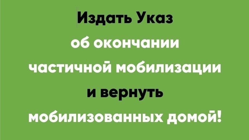 Мы требуем от Президента РФ издание указа об окончании частичной мобилизации и о возможности для тех, кто уже отслужил по контракту или был мобилизован вернуться домой.