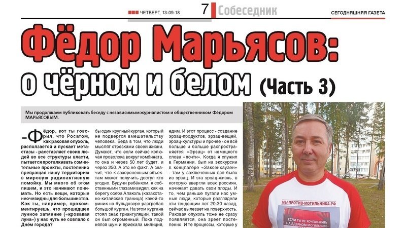 Информационное наполнение всех этих публикаций рассчитано на стереотипы максимально широкого круга читателей. В Железногорске (Красноярск-26) живут же не только атомщики и спутникостроители, но и простые обыватели. Кроме того, эти публикации будут продублированы отдельными тиражами в ещё одном закрытом атомном городе – Зеленогорске (Красноярск-45). Вот такой мастер-класс по информационному взаимодействию с обществом мы преподнесли нашим дорогим оппонентам, пока они носились со своими выборами. Как говорили бойцы из «Бессмертного полка»: «Врёшь – не возьмёшь!».