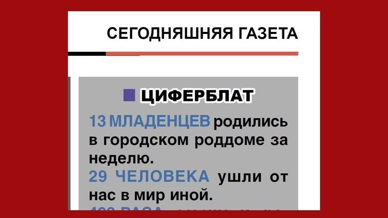 В России идёт "тихая война". В том числе и на территории опережающего развития ЗАТО Железногорск (Красноярск-26). На фото данные потерь за прошлую неделю. По неофициальным сведениям, численность города Железногорска уже достигла порядка 73 тысяч человек. Когда-то было за сотню. Но сцепив зубы, вместе со всеми россиянами железные горцы, под хоругвями Единой России и ликами вождя, с маниакальным суициидальным упорством продолжают двигаться курсом вставания с колен.