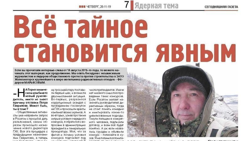 Если кто-то хочет понять, как и за что в нашей стране можно схлопотать обвинение в государственной измене, или как спецслужбы прикрывают сомнительные дела Росатома, может ознакомиться с материалом, который вышел в "Сегодняшней газете". И судя по всему, эта детективная история будет иметь не менее любопытное продолжение. Бумеранги возвращаются обратно. См. здесь https://clck.ru/KTuzY .