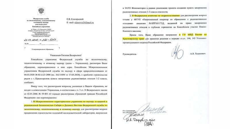 Тем временем, друзья, поступают и хорошие новости с полей борьбы против превращения России в международную радиоактивно-ядерную помойку. Посмотрите на заставке, какой очередной любопытный ответ поступил от Енисейского управления Ростехнадзора. Это всё плоды посещения Красноярска обаятельной и решительной «блондинки» из Росприроднадзора РФ (она его возглавляет!). Кто бы мог подумать, что такие круги по воде пойдут. Разумеется, это ещё далеко не решение вопроса, но обнадёживающая тенденция налицо. И это радует.