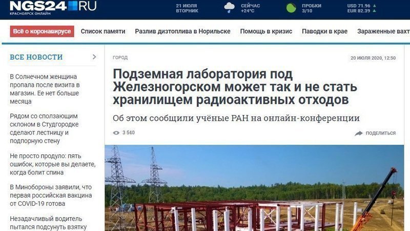 Вслед за Ньюслабом эстафетную палочку по одурачиванию населения подхватила НГС24, порадовавшая могилостроителей и их группу поддержки публикацией под заголовком "Подземная лаборатория под Железногорском может так и не стать хранилищем радиоактивных отходов. Об этом сообщили учёные РАН на онлайн-конференции". См. здесь https://ngs24.ru/news/more/69374974/ .