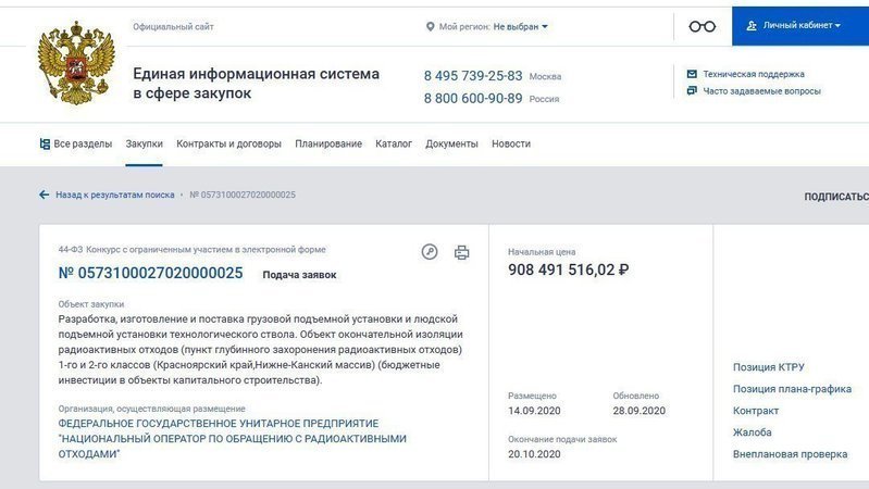 Пока пропагандисты мифа про строительство "уникальной подземной лаборатории" морочат голову добропорядочным гражданам, могилостроители выложили очередную заявку на закупку оборудования. Название заявки более чем красноречиво говорит о том, что на самом деле строится: