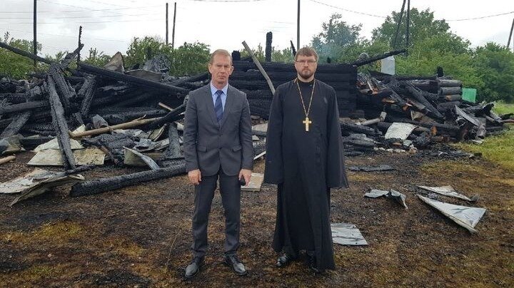 Пост от 23.06.2021: "Знаковое фото выложено на сайте Железногорского храма. Это железногорский первосвященник Роман Нещерет и генеральный директор Горно-химического комбината Дмитрий Колупаев стоят на фоне сгоревшей дотла церкви Покрова Божией Матери в деревне Б. Балчуг. Церковь сожгла молния, ударившая в купол аккурат во время вечернего богослужения на Троицу. "Прости нас, Пресвятая Богородица, мы оказались недостойны Твоего Пречистого Покровского храма…" - написано на сайте по поводу печального события.