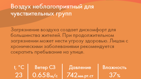 • от 100 до 150 – оранжевый цвет, воздух неблагоприятный для чувствительных групп