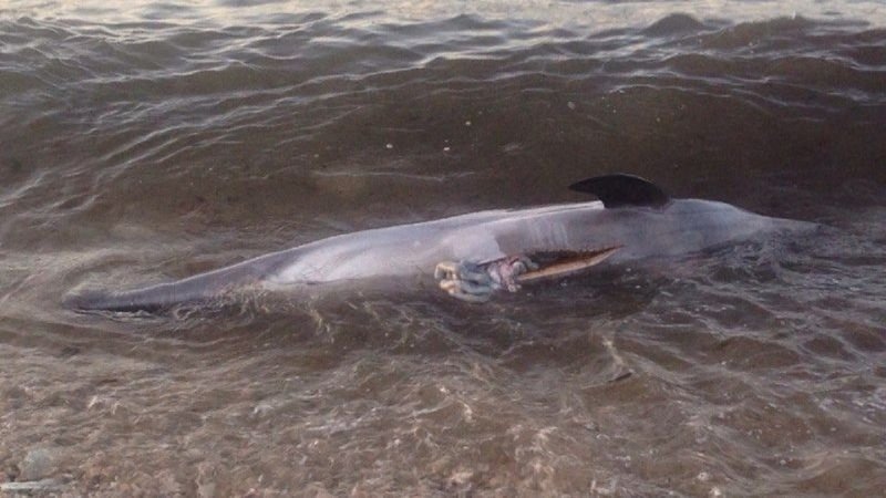 В Севастополе в Стрелецкой бухте обнаружен очередной труп дельфина со вспоротым животом. Мёртвое животное нашли горожане, они и обратились к биологам.