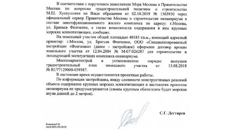 На этот новый призыв не строить в Москве новый океанариум мэрия ответила, океанариуму быть, крупных млекопитающих не будет, но акулы извините, подвиньтесь! https://www.facebook.com/photo.php?fbid=2740877772642592&set=gm.1386726161491140&type=3&theater&ifg=1