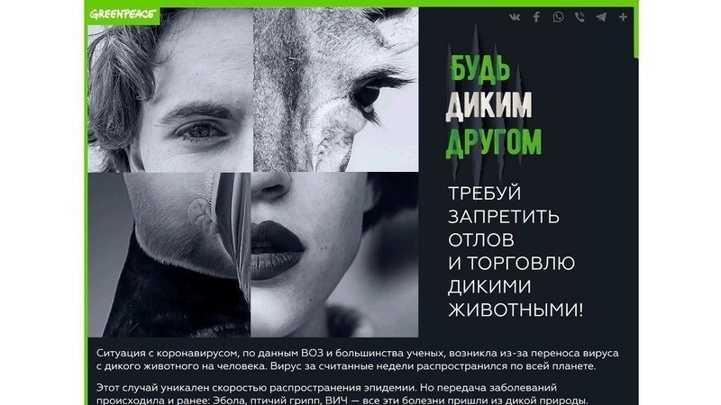 Кампания направлена на запрет отлова и торговли дикими животными.