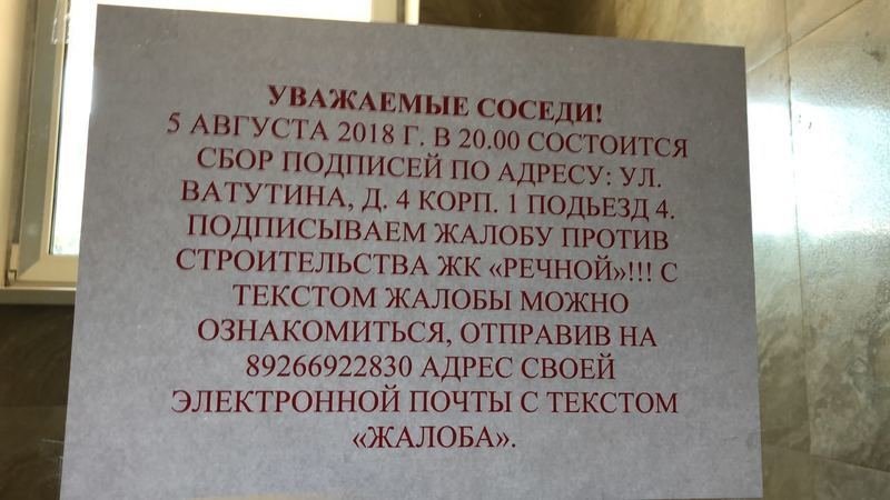 Сбор подписей по адресу ул Ватутина д.4 к1, 5 августа в 20-00.