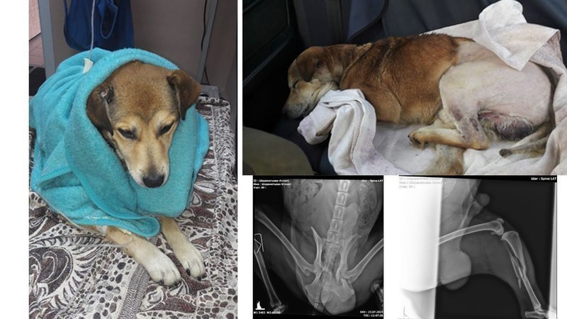 У него сломана лапа в 5 (ПЯТИ!) местах. И перелом таза со смещением!