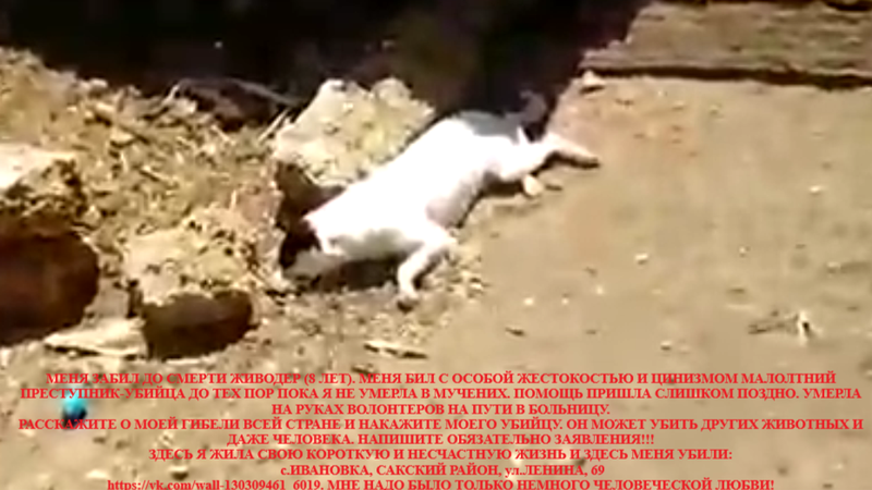 Petition updateОбъединяю людей против зоофашизма и зоофашистов!ПРОШУ ПОМОЩИ В НАПИСАНИИ ЗАЯВЛЕНИЙ! МАЛОЛЕТНИЙ ЖИВОДЕР ЗАБИЛ СОБАЧКУ! с.ИВАНОВКА, САКСКИЙ р-н.