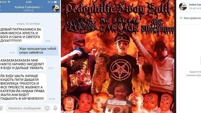 Это он организовал секту, в которую вовлекаются и по сей день подростки. Там и изготовление краша и продажа на даркнете сексуальным извращенцам, там и вовлечение детей в суицидную игру "Синий Кит", там и пропаганда ИГИЛ, там и живодерство в чистом виде, пропаганда догхантинга, поскольку живодеры и дохи скрепились очень плотно, там и развращение детей и продажа видео на закрытых ресурсах. Подрыв государственности.Они создают новую идеологическую основу для молодежи. Они -да, "Савченко" - не один. Над ним тоже есть куратор. И у них есть свои распространители, свои люди в техподдержке в ВКонтакте, Инста, ОК и в ФБ.